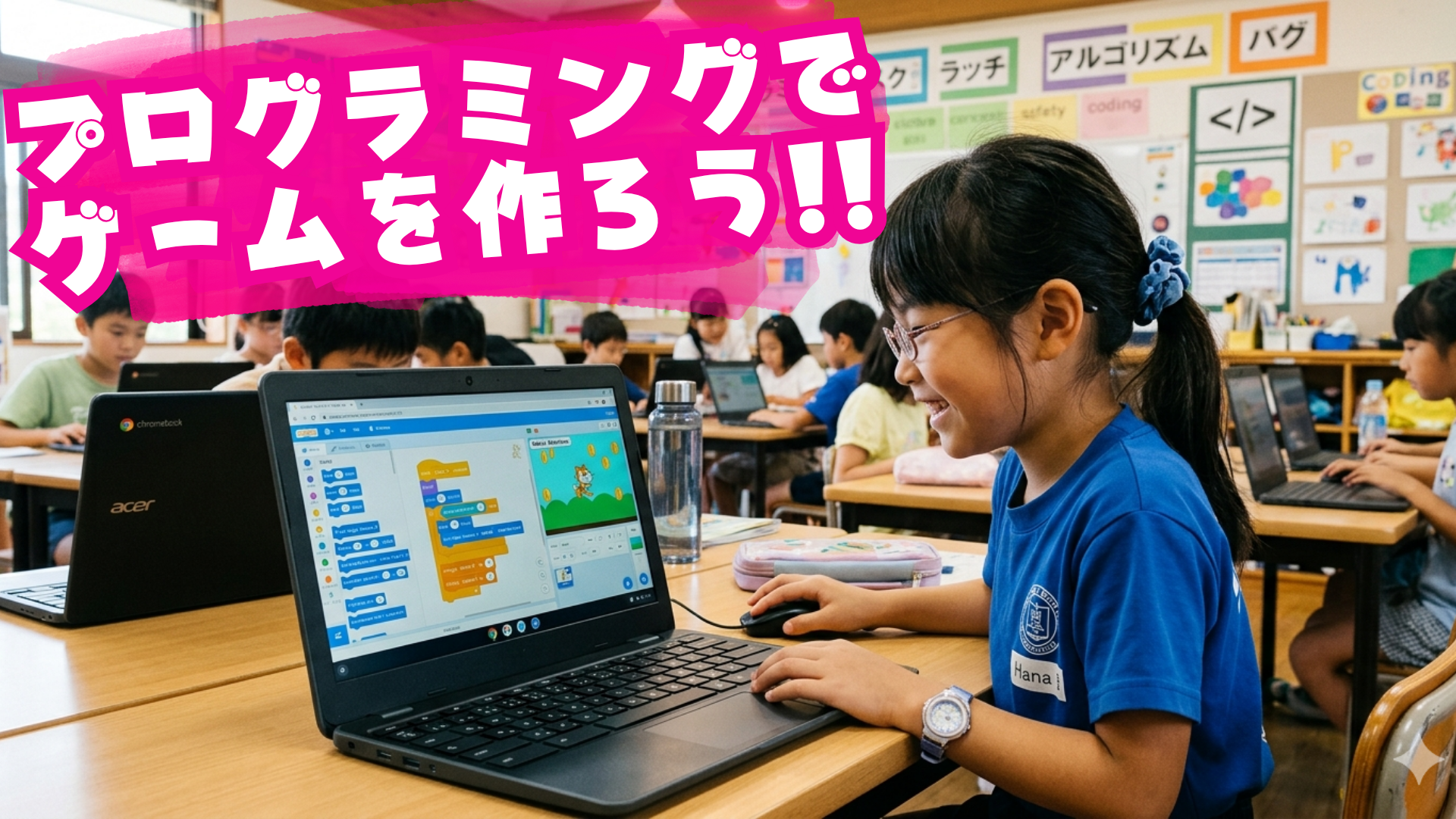 ビジュアルプログラミングソフトの「SCRATCH」を使ってリンゴキャッチゲームを作るよ!!