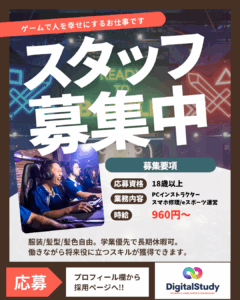 2025.10/24より、現在の学生アルバイトの卒業に伴い新規アルバイトの募集を開始します。